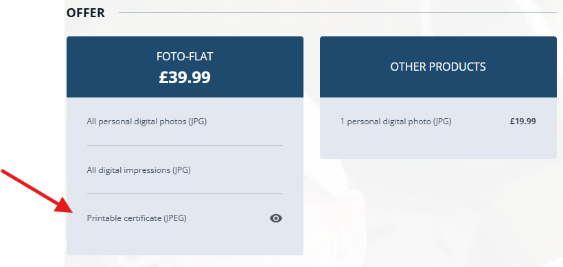 Simply click on the desired individual image from your photo package and then on ‘Certificate’: