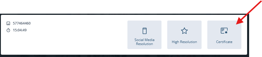 As soon as your photos are available in high resolution and the ‘Certificate’ button is no longer greyed out, it will be available for download in your download area.