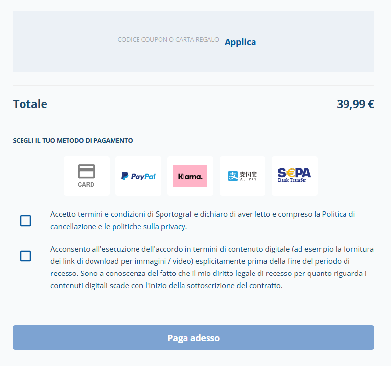 Clicca su „Acquista ora“ e segui i passaggi del processo d’ordine.